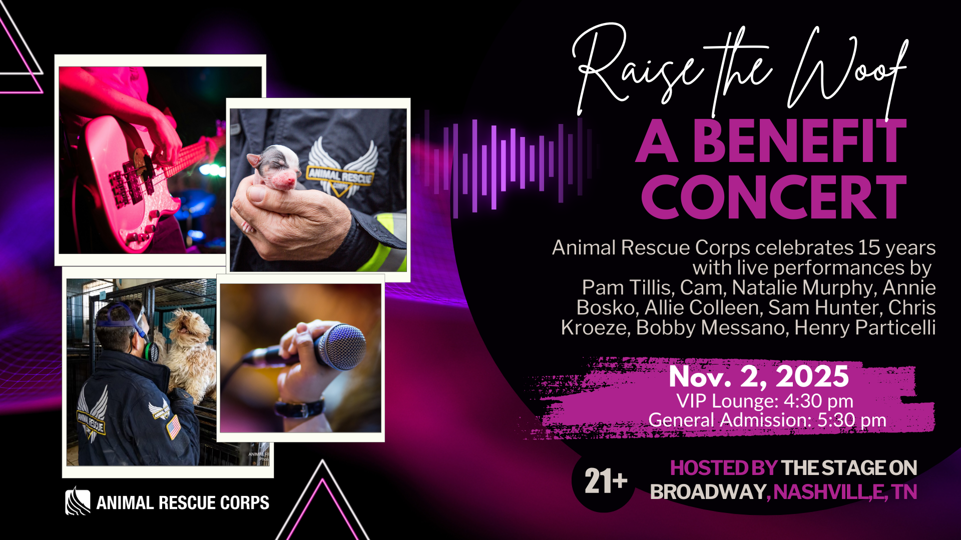 Join us for an unforgettable evening as Animal Rescue Corps celebrates 15 years of rescuing animals in crisis, providing second chances, and building more compassionate communities. This special anniversary event hosted by The Stage on Broadway will feature live performances by: